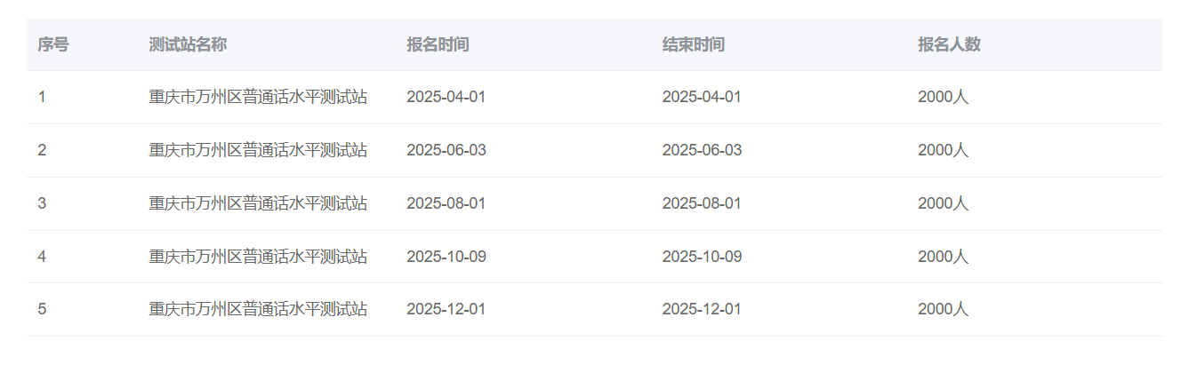 重庆市万州区2025年面向社会普通话水平报名时间:2025年4月1日起