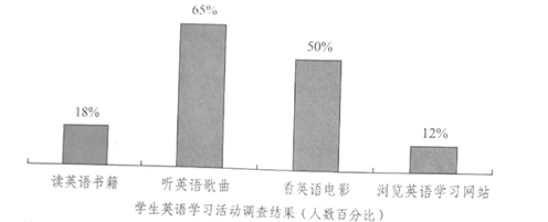 It can easily be seen that the percentage of students who choose listening to English songs and watching English movies is respectively 65% and 50%. However, those choosing reading English books and visiting English learning websites only account for 18% and 12%.