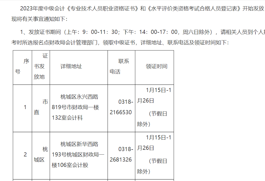 2023年河北衡水中级会计职称考试证书领取时间:即日起