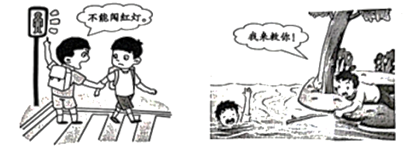 D:分析漫画,劝阻他人闯红灯,但他人落水时及时救援,这都体现了在珍爱自己的生命的同时,也不漠视他人的生命;D正确;