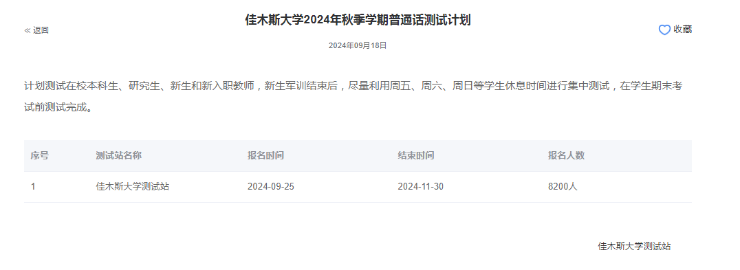 2024年春季黑龙江佳木斯普通话考试时间为3月23日、3月24日,测试地点为佳木斯市教师发展学院。
