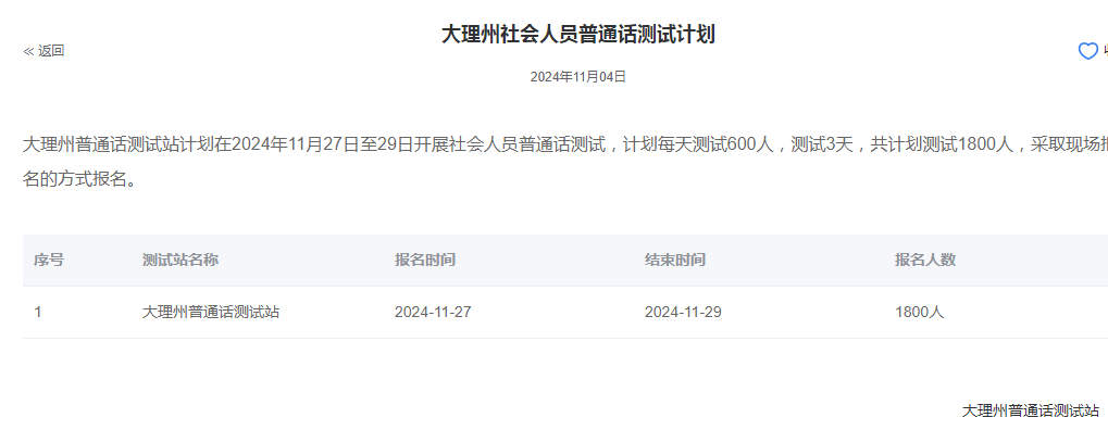 大理市中等职业学校2024年普通话报名时间:2024年10月9日
