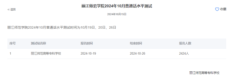 丽江师范学院2024年普通话报名时间:2024年10月19日