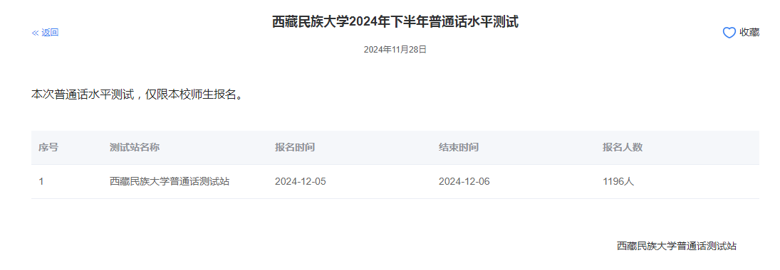 西藏民族大学2024年普通话报名时间:2024年12月5日