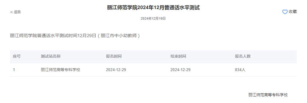 丽江师范学院2024年普通话报名时间:2024年12月29日