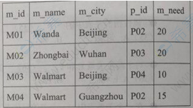 35、假设有两个数据库表,product 表和market 表,分别存放商品信息和市场需求信息。对SQL语句: selet”fom product, market where productp. id markep id的结果描述正确的是( )。如果想从market表中移除m id为MO3的记录,语句( )是正确的。如果要收回GRANT SELECT ON product to role_A WITH GRANT OPTION语句给role_A赋予的权限,使用语句( )。早product表、market表初始数据不变的情况下,以下SQL语句返回的结果有( )条记录。